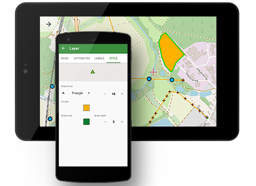 Custom symbology and styles Select icons and color for your feature points, line styles, and fillings for polygons. You can also configure the content and style of feature labels. |