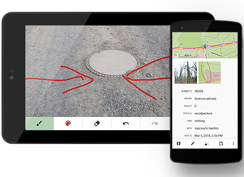 Collect data directly in the field Mobile or tablet is a great tool for collecting and editing data directly in terrain. Thanks to Locus GIS you can save the position and simply attach the key attributes. |